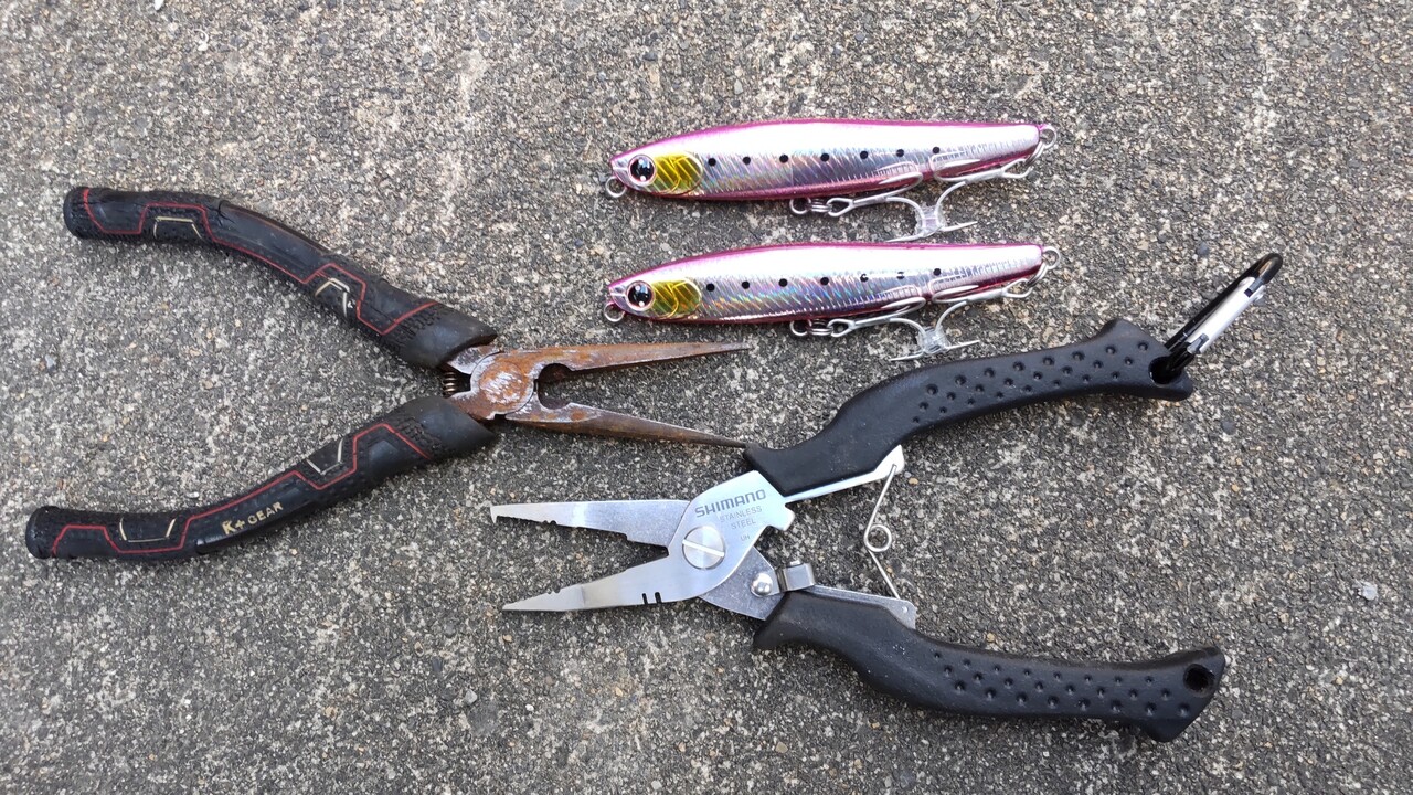 今までのぼろっぼろで錆びっさびのプライヤーからようやく釣り用でステンレスのまともなプライヤーになりました。