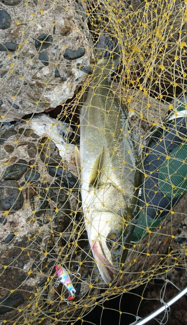 さらに数投後、遠投した巻き始めでググッとのりましたが、80メートル先でエラ洗いされバラしてしまいました。