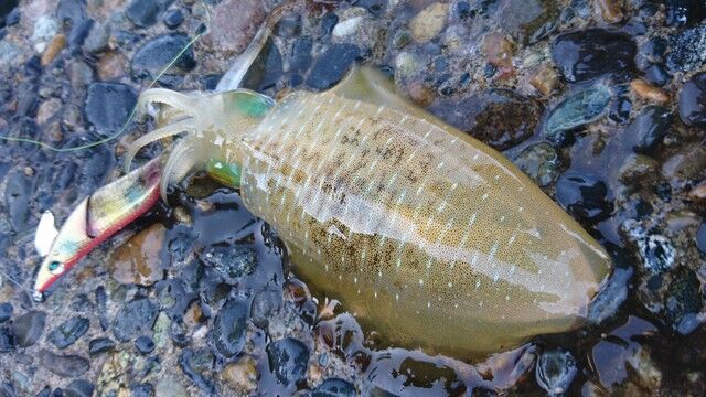 ドラマサイズには届きませんでしたが今シーズン最後のエギングと決めた釣行で納得のサイズでした。